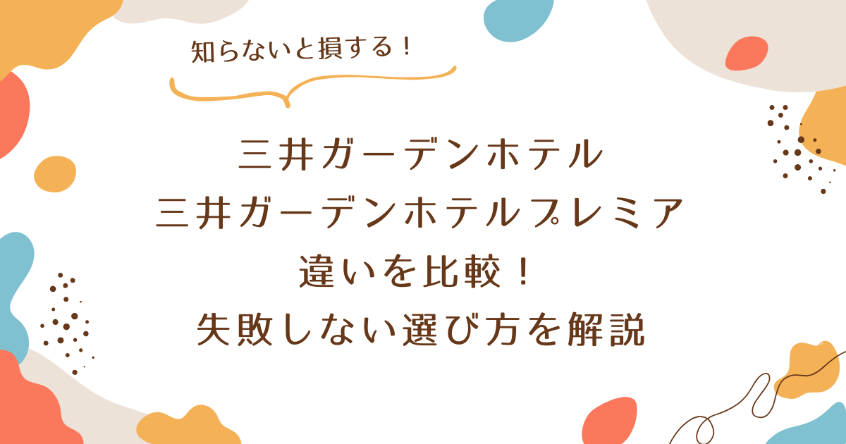 【知らないと損】三井ガーデンホテルとプレミアの違いを比較!失敗しない選び方を解説